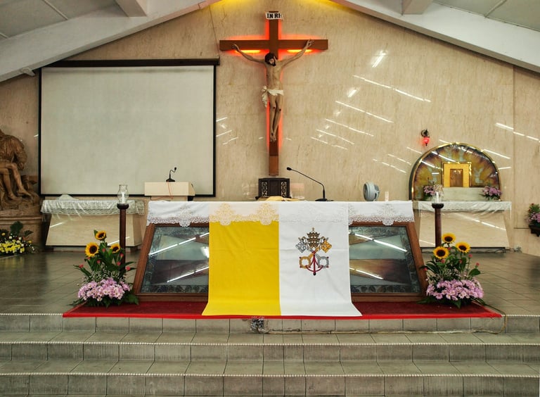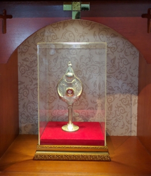 In 2012, Rev. Fr. Mari Arokiam was appointed the new parish priest. He wasted no time continue to advance the ministry and the BEC. His homily and his commitment to the parish started to bring the people into unity. In 2013, the First Class Relics of St. Faustina was obtained. This type of relics are usually found at the representative church such as Church of the Divine Mercy. It was consecrated and it now located at the right side of the sanctuary with a statue of the Divine Mercy at the top. Many miracles had happened since the relics was in the church. Choir was also formed during his time and took its roots since then. Fr. Mari also had the honor of inviting His Grace the Apostolic Nuncio Joseph Salvador Marino, to celebrate Easter Vigil and baptised the RCIA Elects.