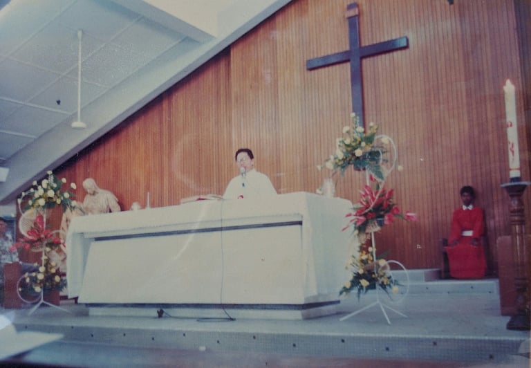 "In December 1953, I came to the Holy Rosary Church in Brickfields. During my 13 years in the Holy Rosary Church, I helped to build the Assumption Church in Petaling Jaya. In 1966 His Grace Archbishop D. Vendargon informed me of the need to built another Church in Klang for the Chinese Parishioners and in February 1966 I agreed to be transferred to Our Lady of Lourdes Church. My main task was to assist Fr. Swaminathan in taking care of the Chinese parishioners.