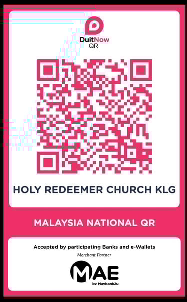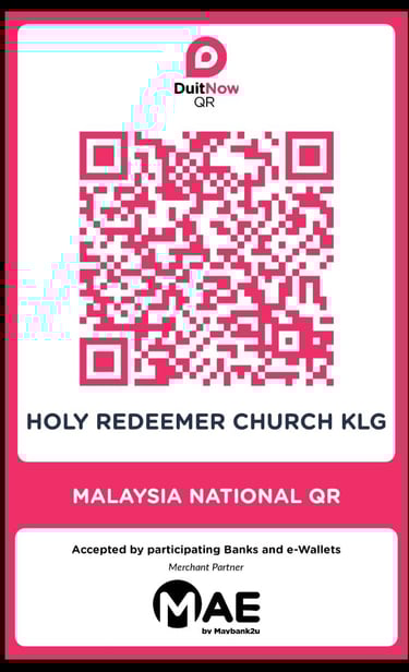 Parish Upkeep - Parishioners may make your contribution directly into our DuitNow QR Code, or our parish banking account as furnished below: